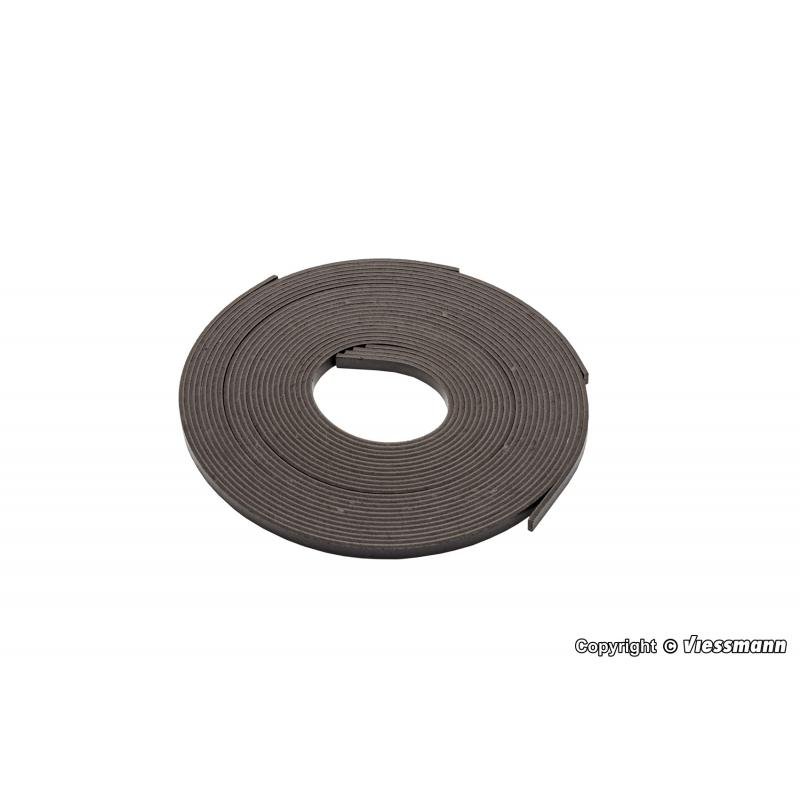 Das selbstklebende Magnetband ist auf seiner Oberfläche polarisiert (Südpol oben). Es leitet die Führungsmagnete der CarMotion Fahrzeuge. Je nach Art der Straße wird es in ein vorgefertigtes Straßensystem eingesetzt oder mit Hilfe einer Oberflächenfräse in die Anlagenplatte eingebaut. Maße: B 0,3 x H 0,1 cm.