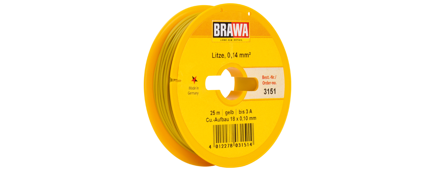 Brawa 3151 - Schaltlitze 0,14 mm², 25 m Spule, gelb