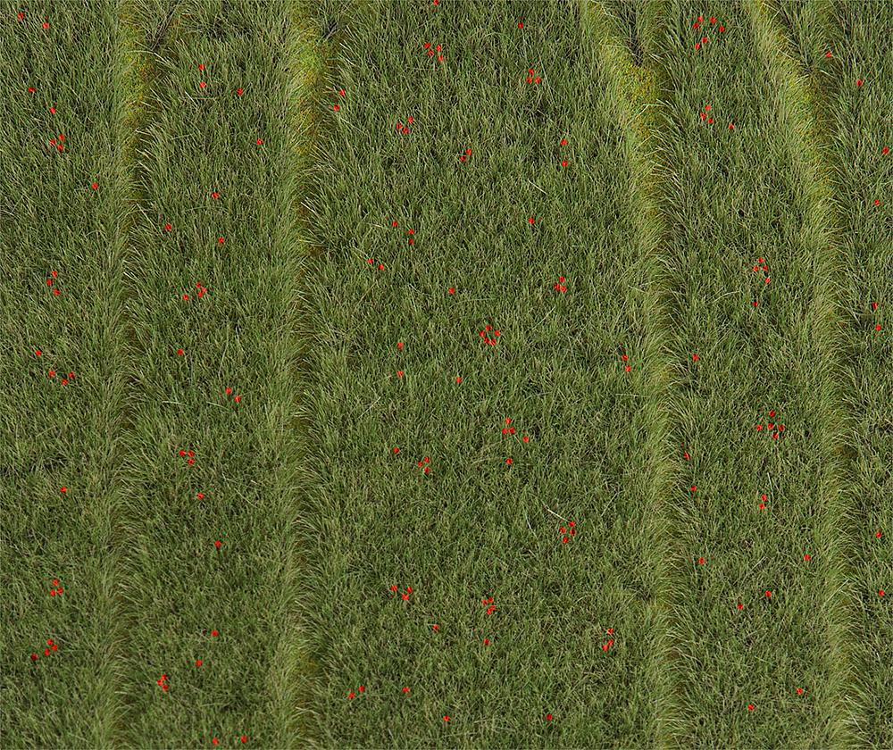Mit den Landschafts-Segmenten in Vliesform, die sich exakt den Geländeunebenheiten anschmiegen, lassen sich Fauna und Flora auf der Anlage realistisch darstellen. Nach Abziehen des Trägerpapiers können die flexiblen, weichen Landschafts-Segmente mit Schere oder Bastelmesser (170687) zurechtgeschnitten, unter anderem auch die Außenseiten der Folien - was natürlichere Übergänge ergibt - bzw. noch besser in passende Stücke gerissen und in die Geländekonturen mit COLOFIX-FLEX (170659) eingeklebt werden. Manche Segmente werden mit transparenten Stellen in unterschiedlicher Dichte hergestellt, so dass eine entsprechende, farblich deckende Vorbehandlung des Untergrunds sinnvoll ist, vor allem wenn Segmente flächig eingesetzt werden. Dies verbessert auch die Klebehaftung. Aufgrund der Basisfarben lassen sich alle Artikel problemlos untereinander kombinieren. Besonders schöne Effekte sind durch Heraustrennen einzelner Inselteile und spezielles Platzieren bzw. durch vorsichtiges Auszupfen zu erzielen.