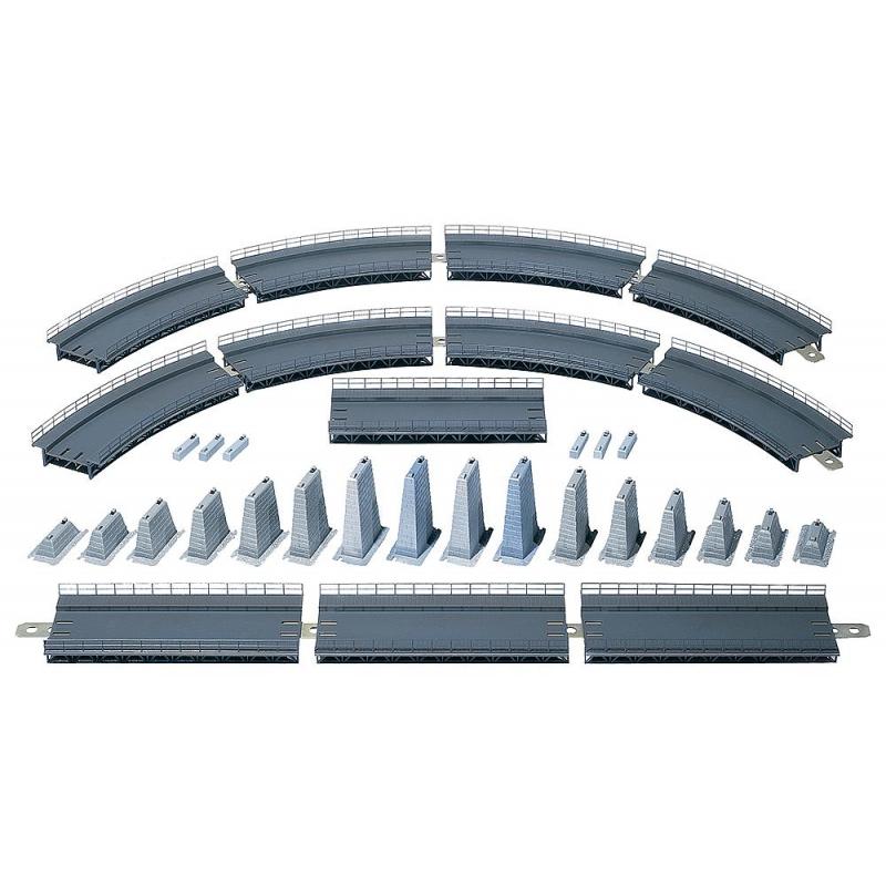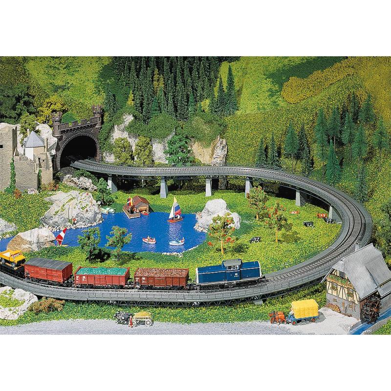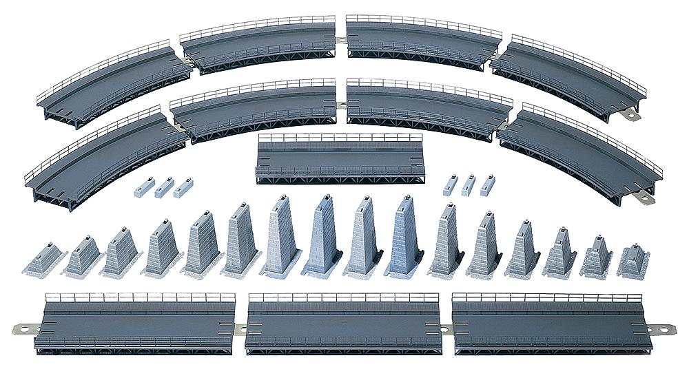 Dieser Bausatz enthält: 4 gerade und 8 gebogene Gleisbetten, je 2 Pfeiler 15, 25, 35, 45, 55 und 65 mm, 4 Pfeiler 75 mm, 6 Pfeilerkopfstücke 8 mm zur Verlängerung auf das Höhenmaß der FALLER-Brücken und Verbindungslaschen für die Gleisbetten.Die Gleisbetten sind für die Aufnahme von Modell- und C-Gleisen geeignet. Zur Verlängerung einer Auf- bzw. Abfahrt sind weitere Pfeiler (Art. 120473), gerade Gleisbetten (Art. 120474) und gebogene Gleisbetten (Art. 120475) erhältlich.