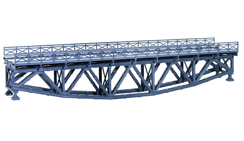 Der Name dieser besonders auffälligen Brücke leitet sich von der Tragwerkkonstruktion ab, die in diesem Fall der Form eines Fischbauches gleicht. Das Tragwerk, wesentlicher Teil der Konstruktion, liegt bei dieser Brückenform unterhalb des Gleises. Brückenköpfe nicht enthalten. In doppelter Ausführung ist ein zweigleisiger Aufbau möglich. Für alle gängigen Gleissysteme geeignet.