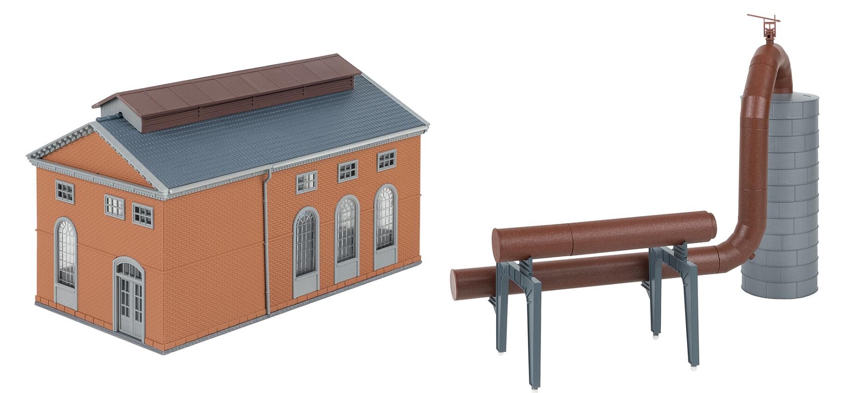 Dieses Miniaturmodell eines Backsteingebäudes mit Hochtank und ausgearbeiteten Rohrleitungen bildet in der Realität ein zentrales Element der Gichtgasreinigung in Hüttenwerken. Die industrielle Szenerie lässt sich mit dem separat erhältlichen Rohrleitungs-Set (Art. 180328) noch weiter ausbauen – für ein realistisches Gesamtbild im Hüttenwerksbetrieb. Das Modell ist abgestimmt auf das Modell des Meidericher Hochofens.