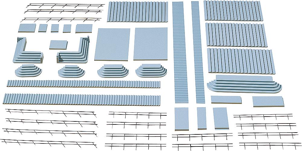 überall, wo es rauf- und runtergeht, können diese verschiedenartigen Treppen- und Stufenteile eingesetzt werden. Mit passenden Geländerteilen.