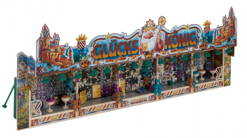 Willkommen auf der pulsierenden Kirmes, einem schillernden Schauplatz voller Leben und aufregender Attraktionen. Hier drehen sich kunterbunte Karussells, während die Schiffschaukel die Besucher in abenteuerlustige und schwindelerregende Höhen katapultiert. Verlockenden Glücksbuden und köstlich duftende Essensstände beleben die Sinne und das bunte Treiben der Kirmeswelt. Diese vielfältige Kirmeslandschaft besteht aus folgenden Modellen: Karussell »Flipper«: Hier drehen sich im atemberaubenden Tempo 12 zweisitzige, bunte Gondeln im Kreis. Gleichzeitig hebt und senkt sich der gesamte rotierende Drehteller. Komplett mit Antriebsmotor (12-16 V, Wechselspannung). Kettenkarussell: Ausgestattet mit 12 Sitzplätzen, farbig gestalteten Dachsegmenten und indirekt bunt beleuchteten Dachträgerstreben der Mittelsäule. Dem Modell liegt eine Micro-Kabelbirne und ein Antriebsmotor (12-16 V, Wechselspannung) bei. Schiffsschaukel mit Antrieb: Ein Modell mit 5 Schiffschaukelplätzen und bunten Dekorbildern. Voll funktionsfähig mit Antriebselement, das das Schwingen jeder einzelnen Gondel in unterschiedlichem Rhythmus ermöglicht. Ausgerüstet mit Blinkmechanik. Zum Betreiben der Blinkereinheit liegt eine Micro-Kabelbirne (Art. 180671) bei. Der Bausatz enthält einen Motor (12-16 V, Wechselspannung). Losbude »Glückskönig«: Glücksbude mit vielen attraktiven Gewinnen. »Jedes Los ein Gewinn. Wer hat noch nicht, wer will noch mal?«. Hier kann jeder sein Glück versuchen. Mit vielen Deko- und Ausschmückungsteilen. 2 Kirmesbuden »Caribic Fruit« + »Asiatische Spezialitäten«: Zwei kulinarische Essensstände, die auf keiner Kirmes fehlen dürfen. »Caribic Fruit« lockt mit einer Vielzahl exotischer Früchte, die in frischen Variationen angeboten werden. Gleichzeitig verführen »Asiatische Spezialitäten« mit einem Duft von erlesenen Gewürzen. Reihengeschäft »Sylter Backfischrutsche«: Der Backfisch wird im ersten Stock des Leuchtturms in einer Riesenpfanne zubereitet und gleitet dann über eine Edelstahlrutsche in den unteren Verkaufsraum. Originalreihengeschäft des Schaustellers Manfred Jipp aus Kiel. Das komplette Kirmesvergnügen in einem Set, das insgesamt sechs bekannte und beliebte FALLER Kirmes-Klassiker vereint.