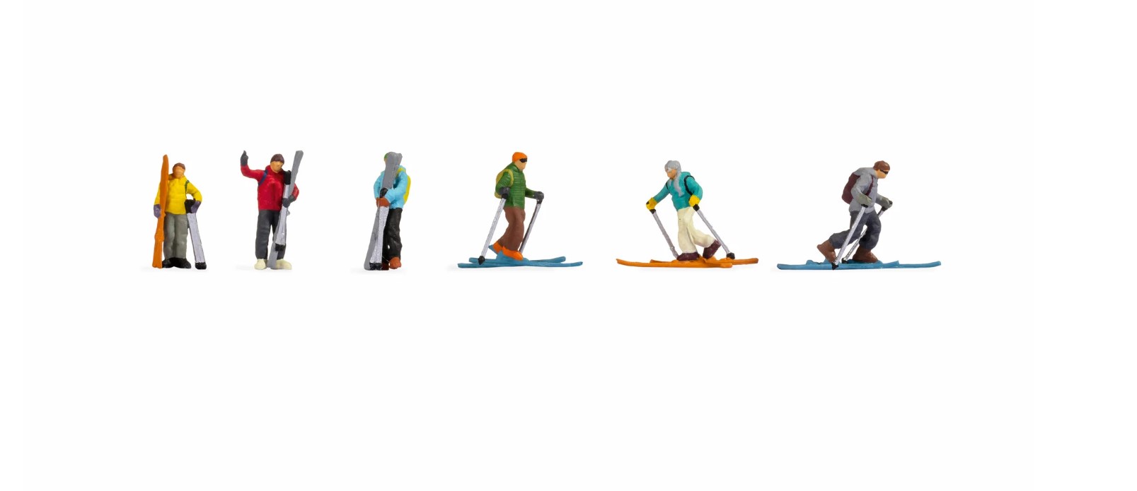 Skifahren ist der absolute Klassiker bei den Wintersportarten und seit jeher beliebt. Will man aber nicht auf überfüllte Skipisten und Gebiete, gibt es auch die Möglichkeit, abseits zu fahren. Mit sogenannten Tourenski kann man auch abseits der regulären Pisten fahren und somit auf unberührten Schneelandschaften genießen. Die Skifahrer müssen aber aufpassen, dass Sie keine Lawinen auslösen. Mit dem neuen Figurenset "Wintersport" können Sie jeden beschneiten Hang auf Ihrer Modellanlage in eine Piste für Tourengeher verwandeln! Das Figurenset beinhaltet 6 Figuren, davon haben 3 ihre Skier bereits ausgezogen, und 3 fahren auf Ihren Skiern den Berg hinunter.