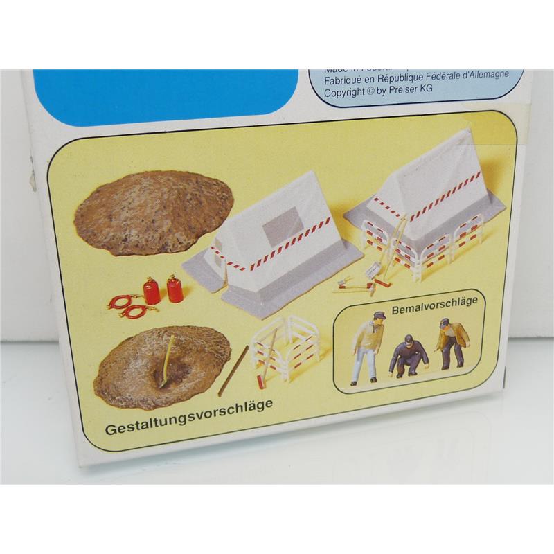 Fernmeldearbeiter bei der Arbeit, Bauzelte bedruckt