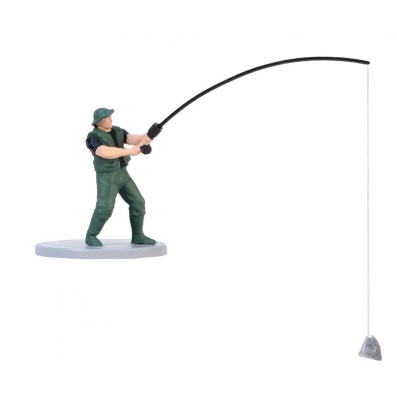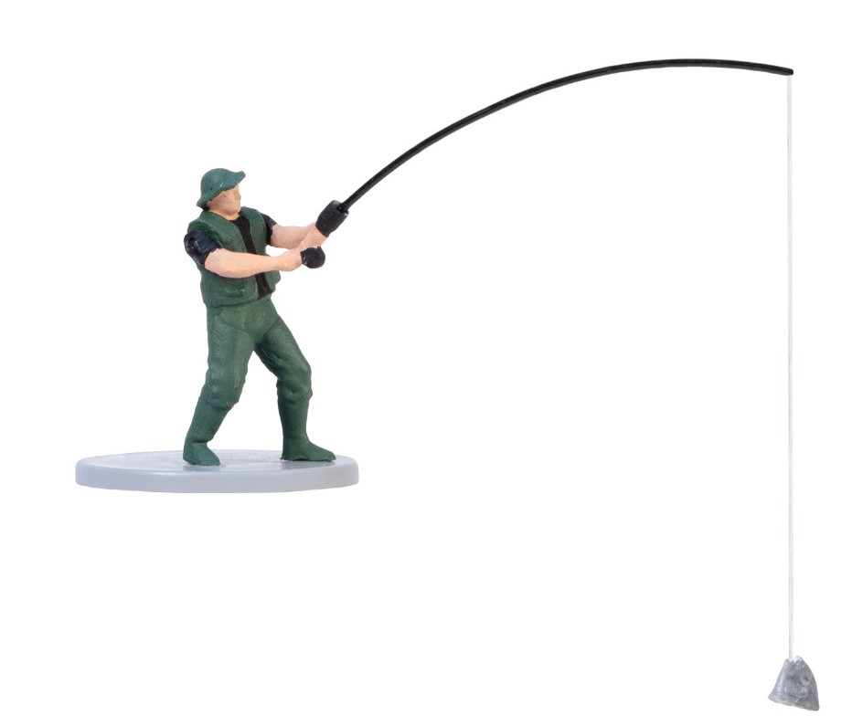 Wie wäre es mit einem Angler, der gerade einen großen Fang an Land zieht?