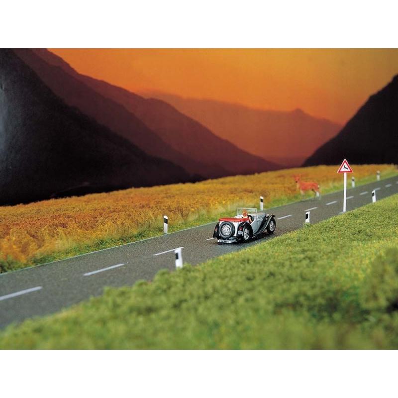 Die 66 mm breiten Landstraßen sind für H0 (schmale Landstraße) und TT (normale Landstraße) geeignet.