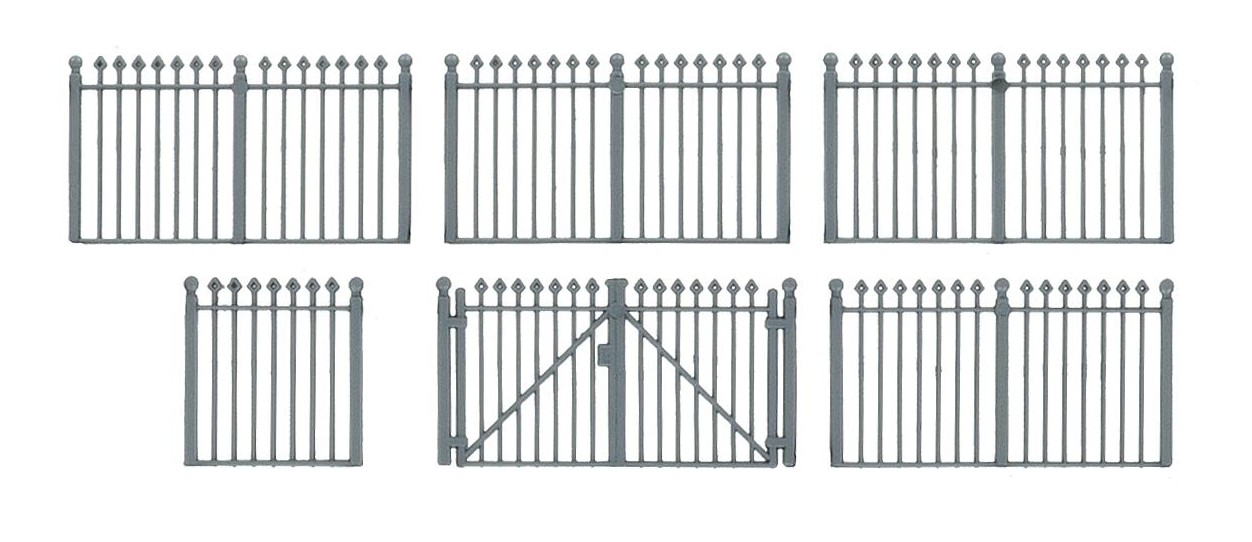 Ein filigraner Eisenzaun mit kunstvoll verzierten Spitzen – in eleganter Gitterform, der perfekt geeignet ist, um die Modelllandschaft mit etwas mehr liebevollem Detail zu versehen. Das Set enthält verschiedene Zaunsegmente sowie ein doppelflügeliges Tor, wodurch sich zahlreiche Aufbauvarianten realisieren lassen.