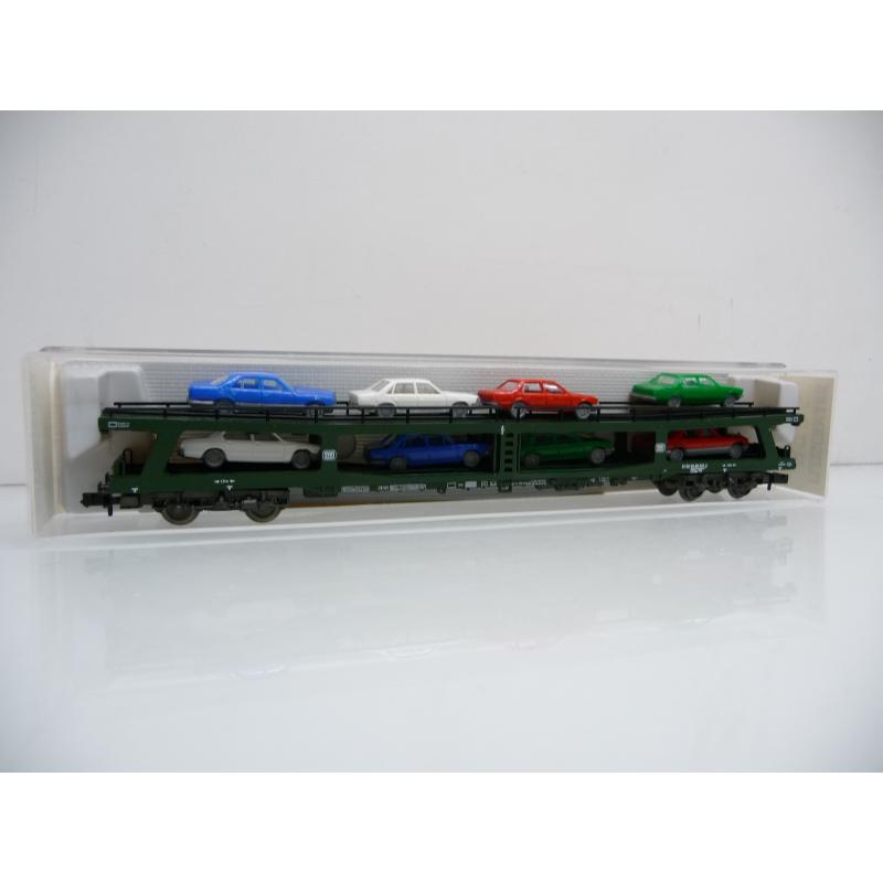 » » » » Fleischmann N 8285 Autotransportwagen grün der DB beladen mit 8 Modellautos