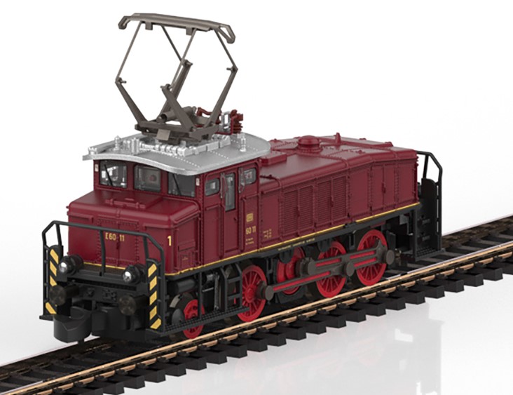 Vorbild: Purpurrote Rangierlokomotive E 60 der Deutschen Bundesbahn (DB) im Zustand der Epoche IIIb.
