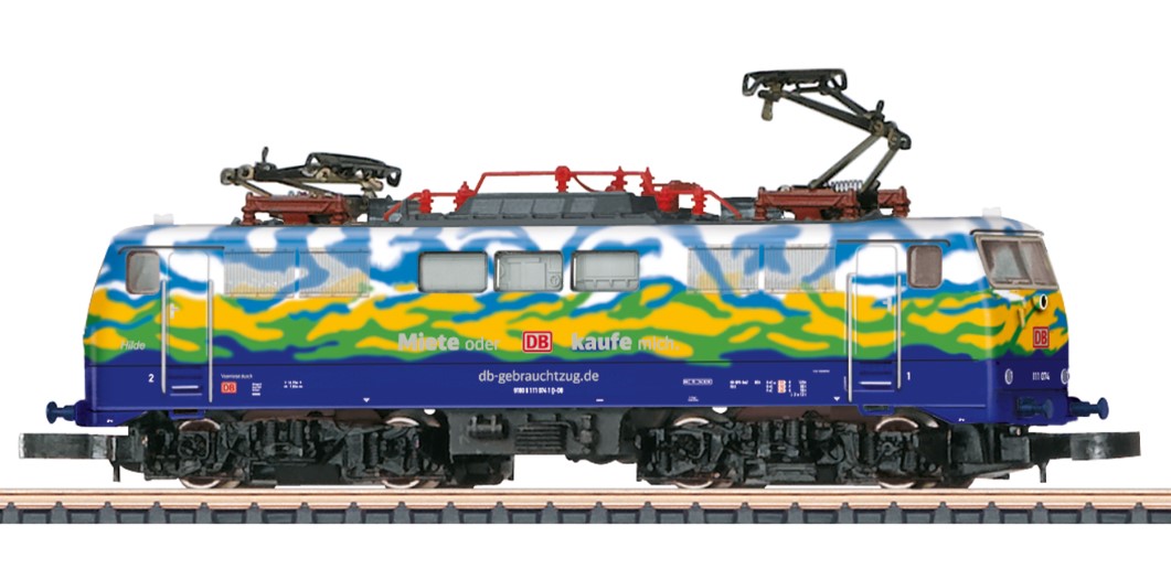 Vorbild: Mehrzweck-Elektrolokomotive Baureihe 111 074-1 der Deutschen Bahn AG (DB-Gebrauchtzug) in Touristik-Farbgebung im aktuellen Betriebszustand. Lokname "Hilde".