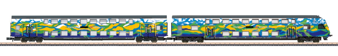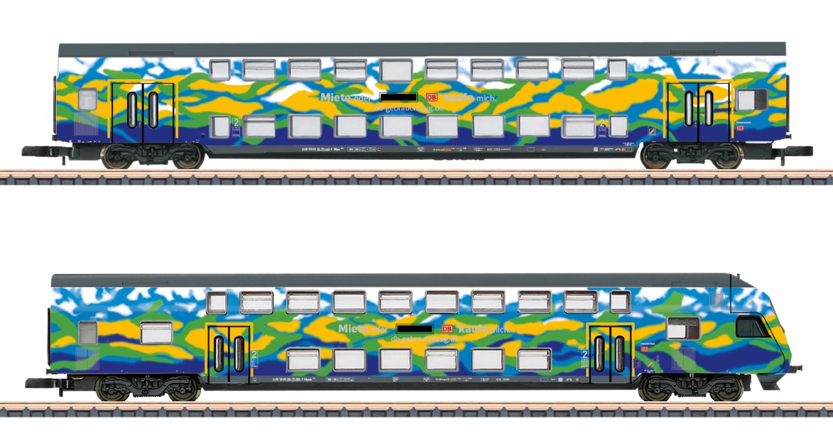 Vorbild: 1 x Doppelstock-Mittelwagen DBpza 753.5 und 1 x Doppelstock-Steuerwagen DBpbzfa 765.6 der DB AG, Geschäftsbereich DB-Gebrauchtzug. Aktueller Zustand der Epoche VI.