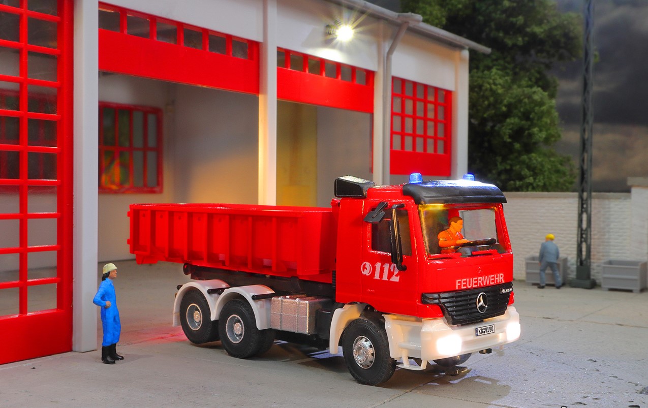 Feuerwehr 3-achs mit Abrollcontainer und Rundumleuchten