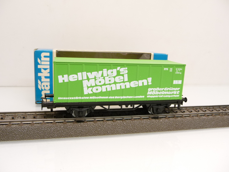» » » » Märklin 4481 H0 Containerwagen Hellwig´s Möbel kommen! grün Werbemodell TOP in OVP