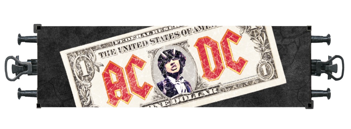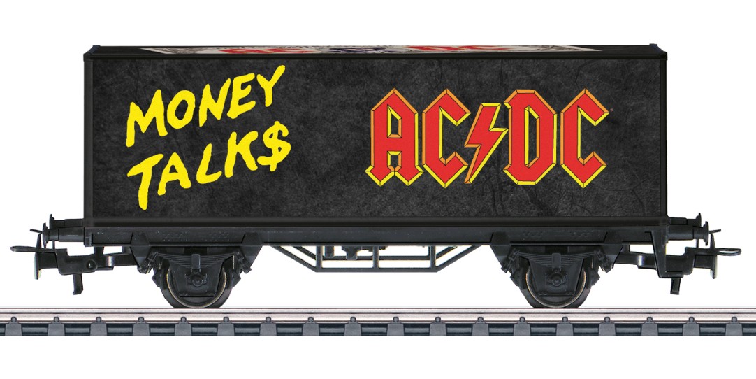 Containerwagen in der bekannten Banknoten-Gestaltung zur AC/DC Single Moneytalks aus dem Jahre 1990.