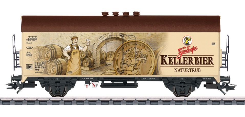 Vorbild: Privater Bierkühlwagen Ibopqs der Tucher Bräu GmbH & Co. KG, Fürth. Gestaltung mit "Zirndorfer Kellerbier Naturtrüb" Werbemotiv.