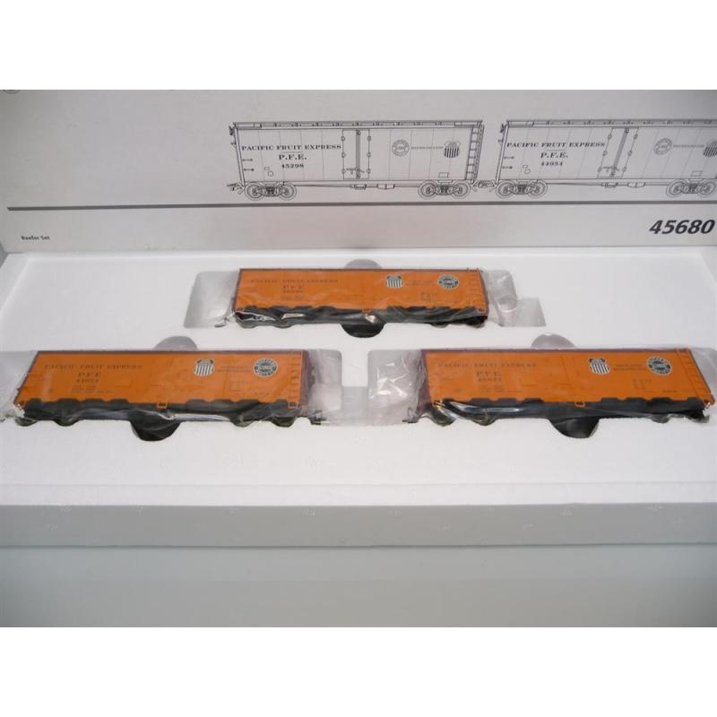 Vorbild: Reefer (Refrigerator Car) Typ R-40-14 der Union Pacific Railroad (U.P.) und der Southern Pacific Lines (S.P.) für den Pacific Fruit Express (PFE).