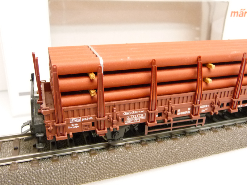 » » » » Märklin 4694 H0 Rungenwagen Kbs 443 der DB braun mit Ladegut Röhren Ep. IV TOP in OVP