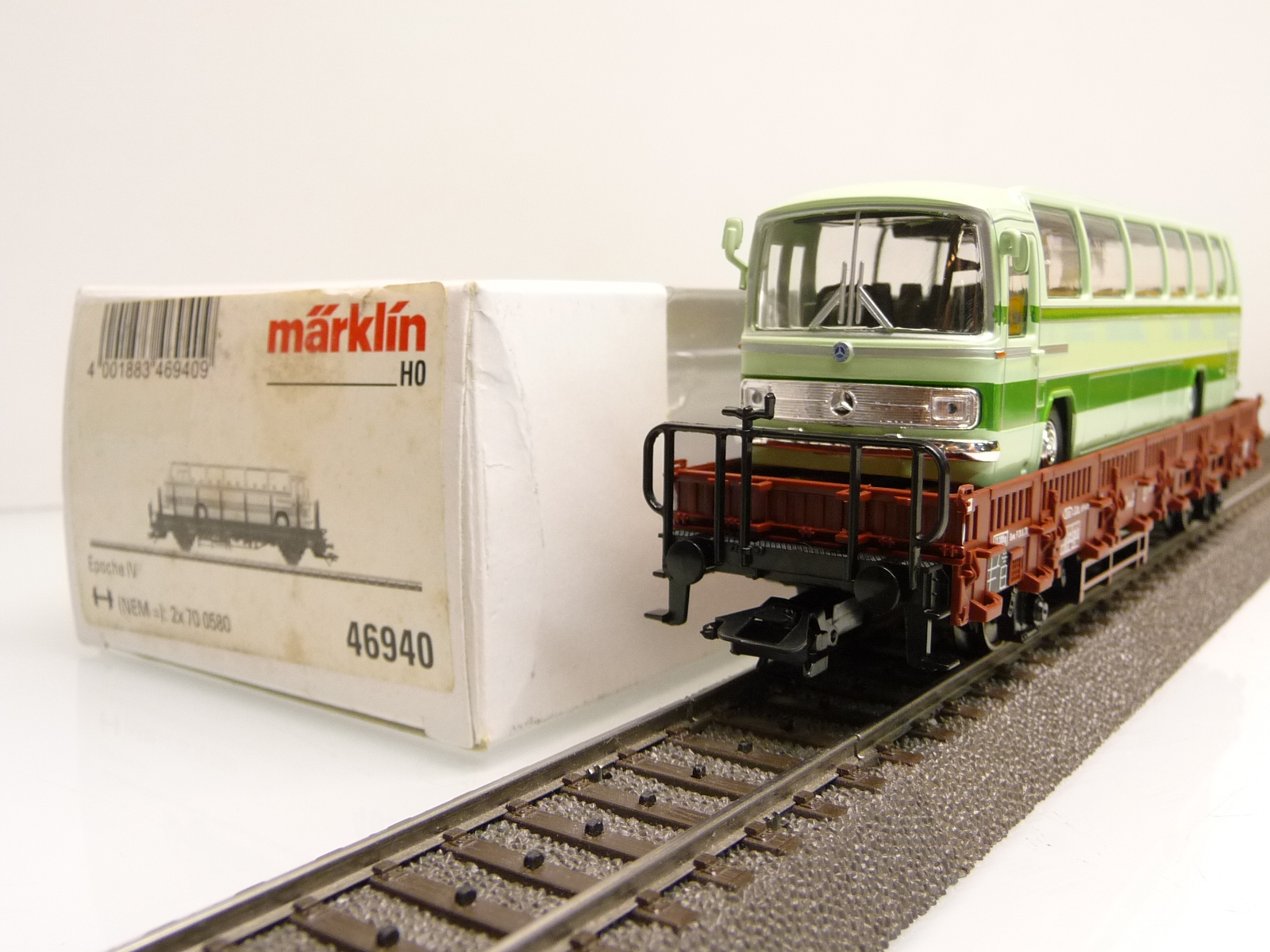 » » » » Märklin 46940 H0 Rungenwagen Kbs 443 beladen mit Mercedes Reisebus DB Ep. IV TOP in OVP