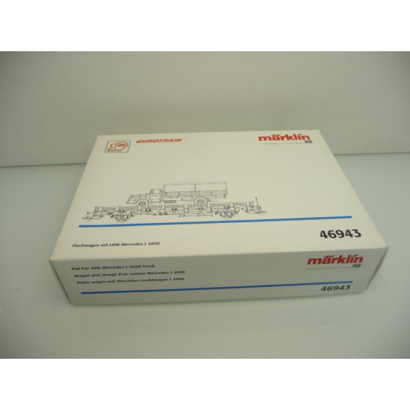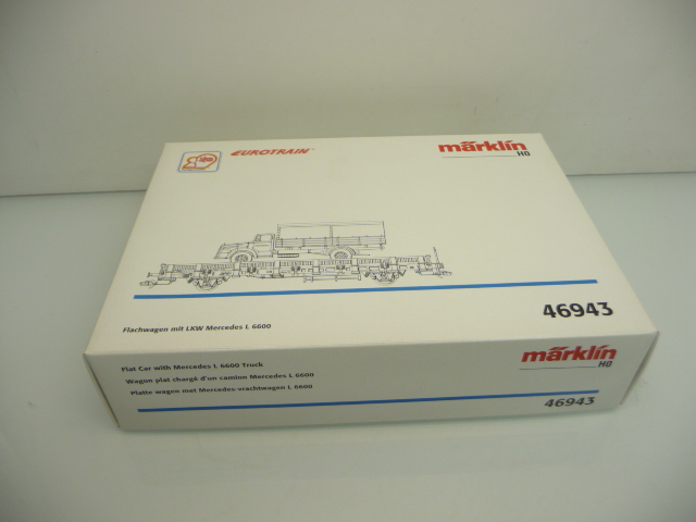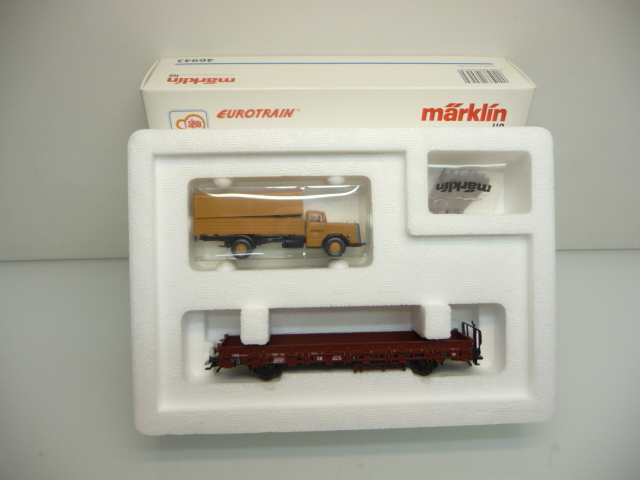 » » » » Märklin 46943 H0 Flachwagen mit WIKING LKW Mercedes L 6600 wie ladenneu in OVP !!