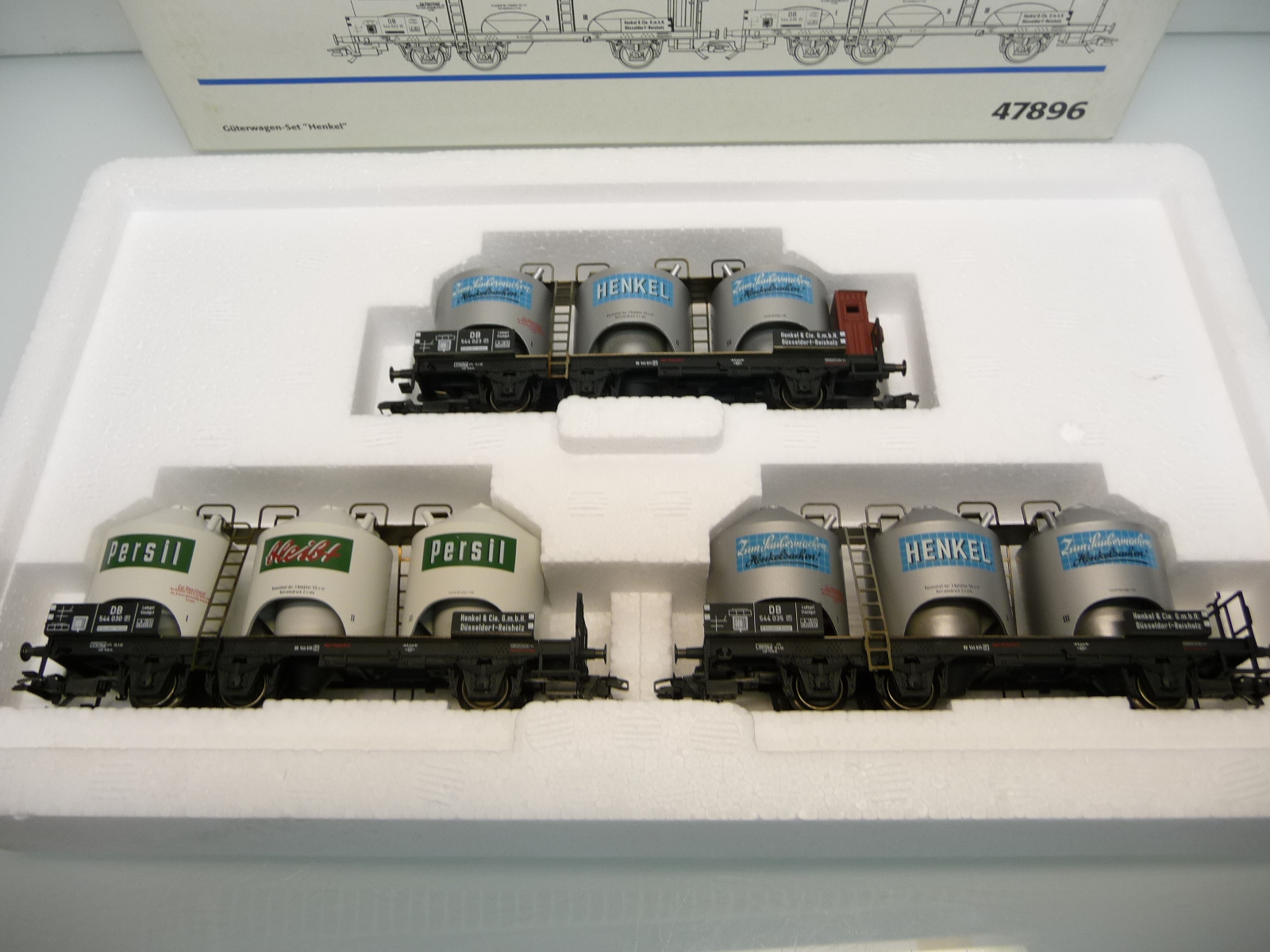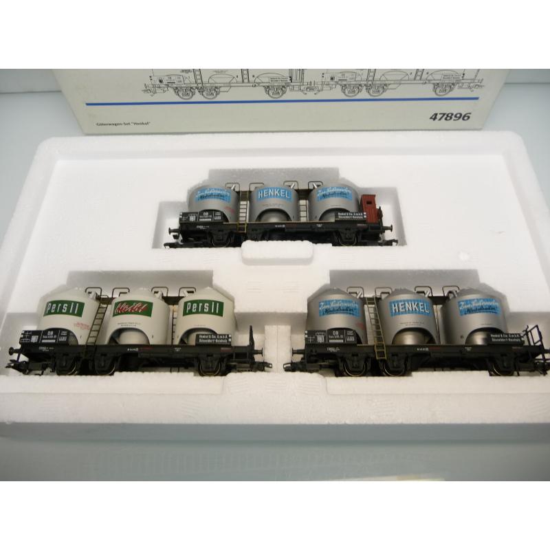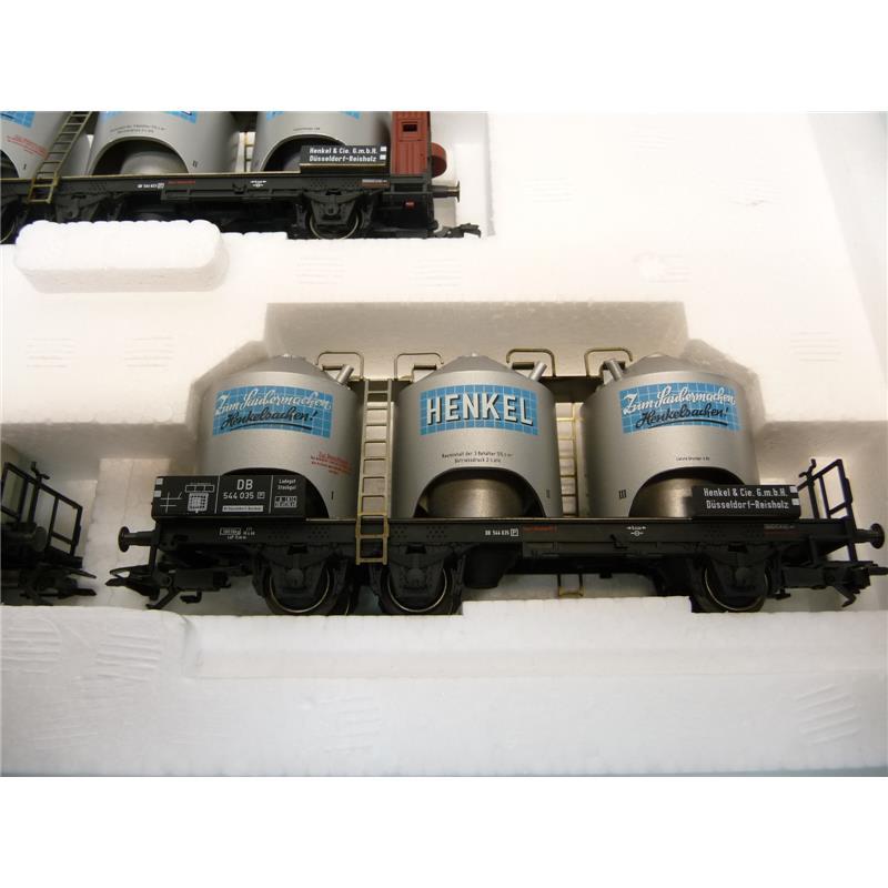 Märklin H0 1:87 3L~ ACArtikelnummer 47896Zustand wie NEUWARE in OriginalverpackungSilowagenset der Fa Henkel Düsseldorfmit 3 Silowagen -3-achsig