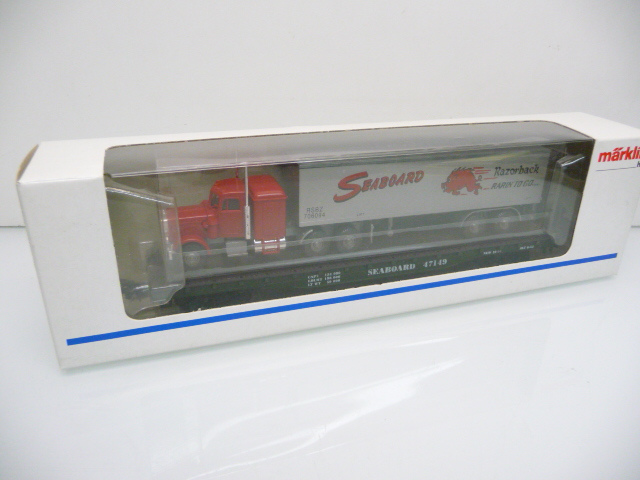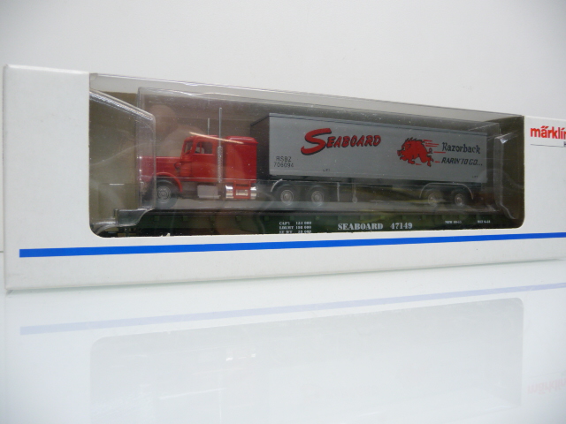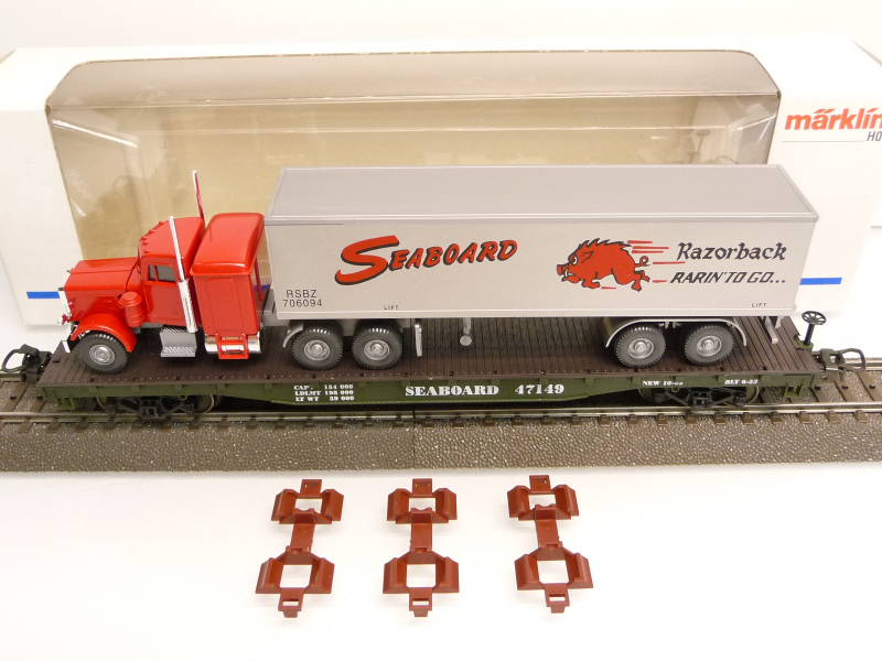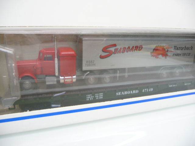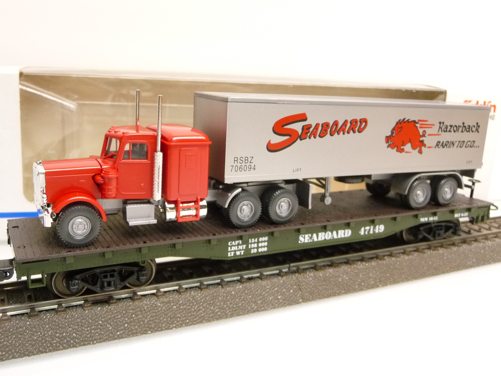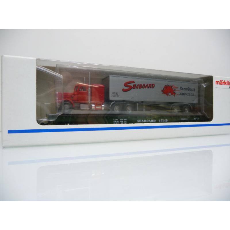 US-Flachwagen beladen mit US Peterbilt Truck " Seaboard "