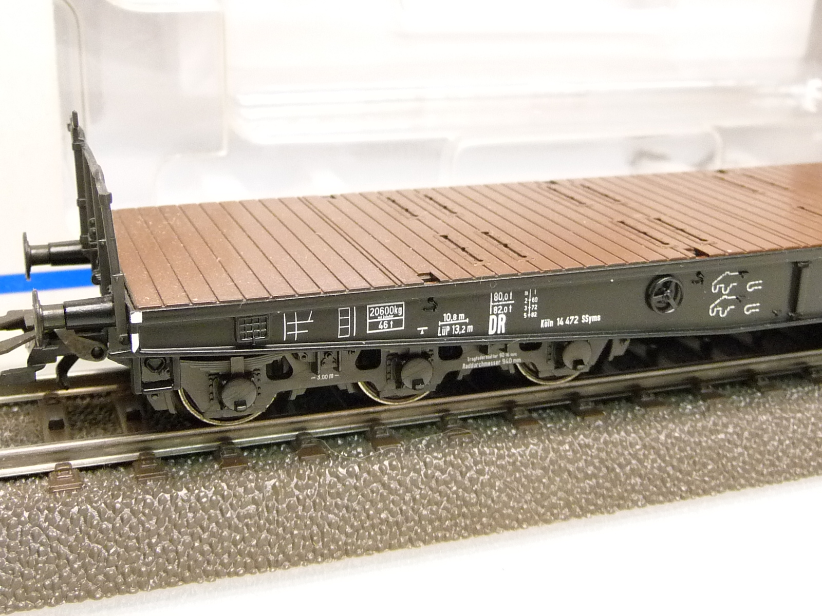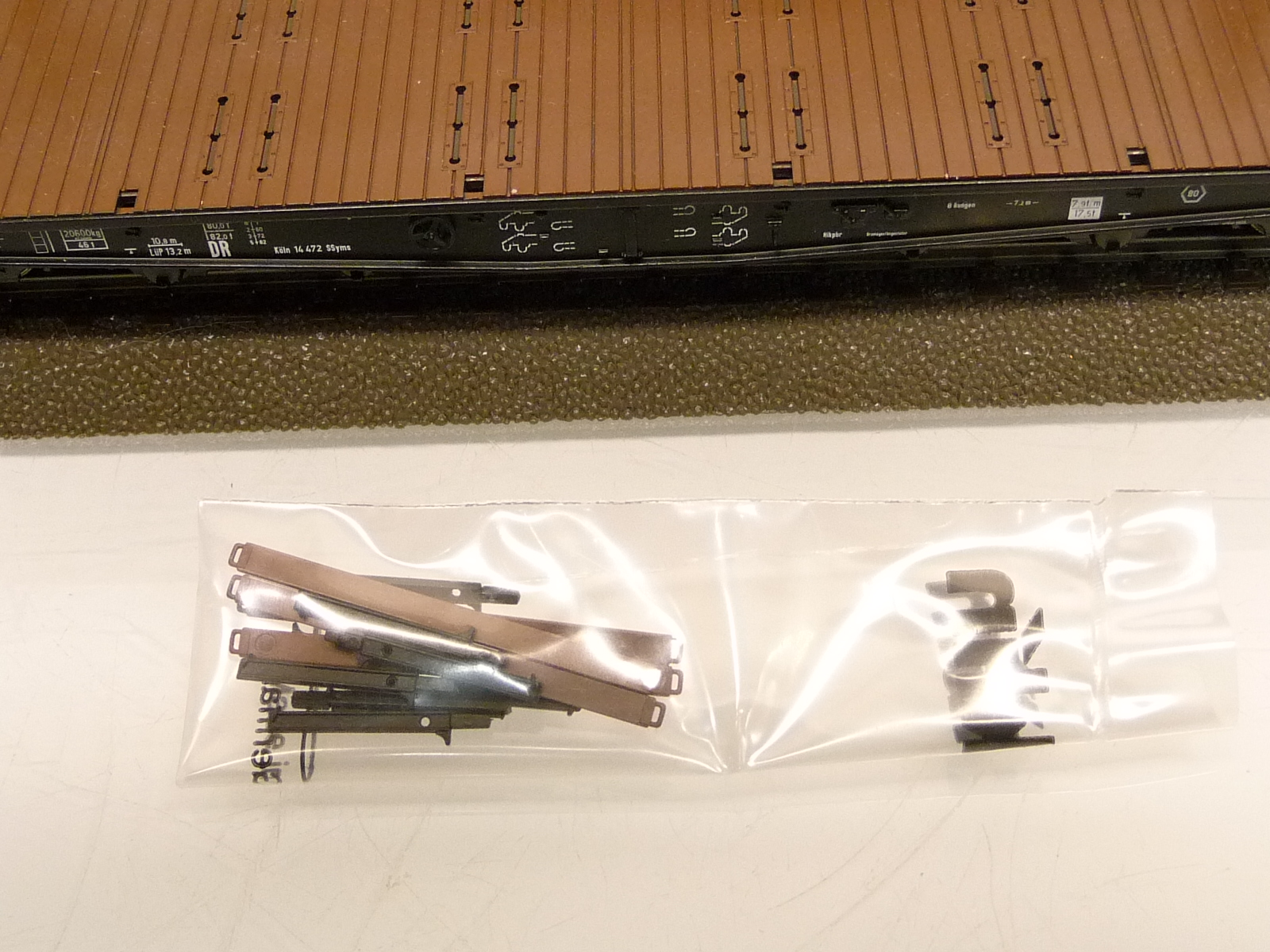 Belastungsfähige Drehgestelle. Länge über Puffer 15,2 cm.