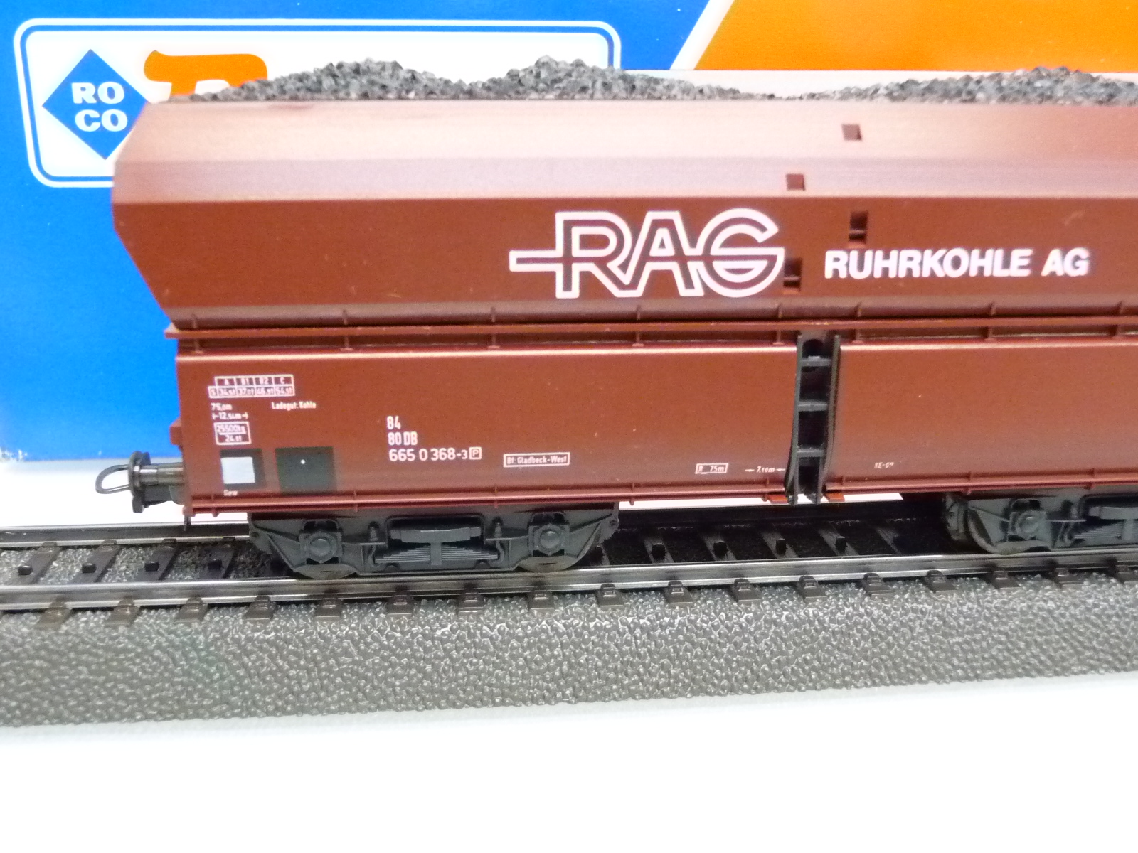 » » » » Roco 46244 H0 Selbstentladewagen RAG Ruhrkohle mit Ladegut Kohle DB Ep. IV wie ladenneu !!