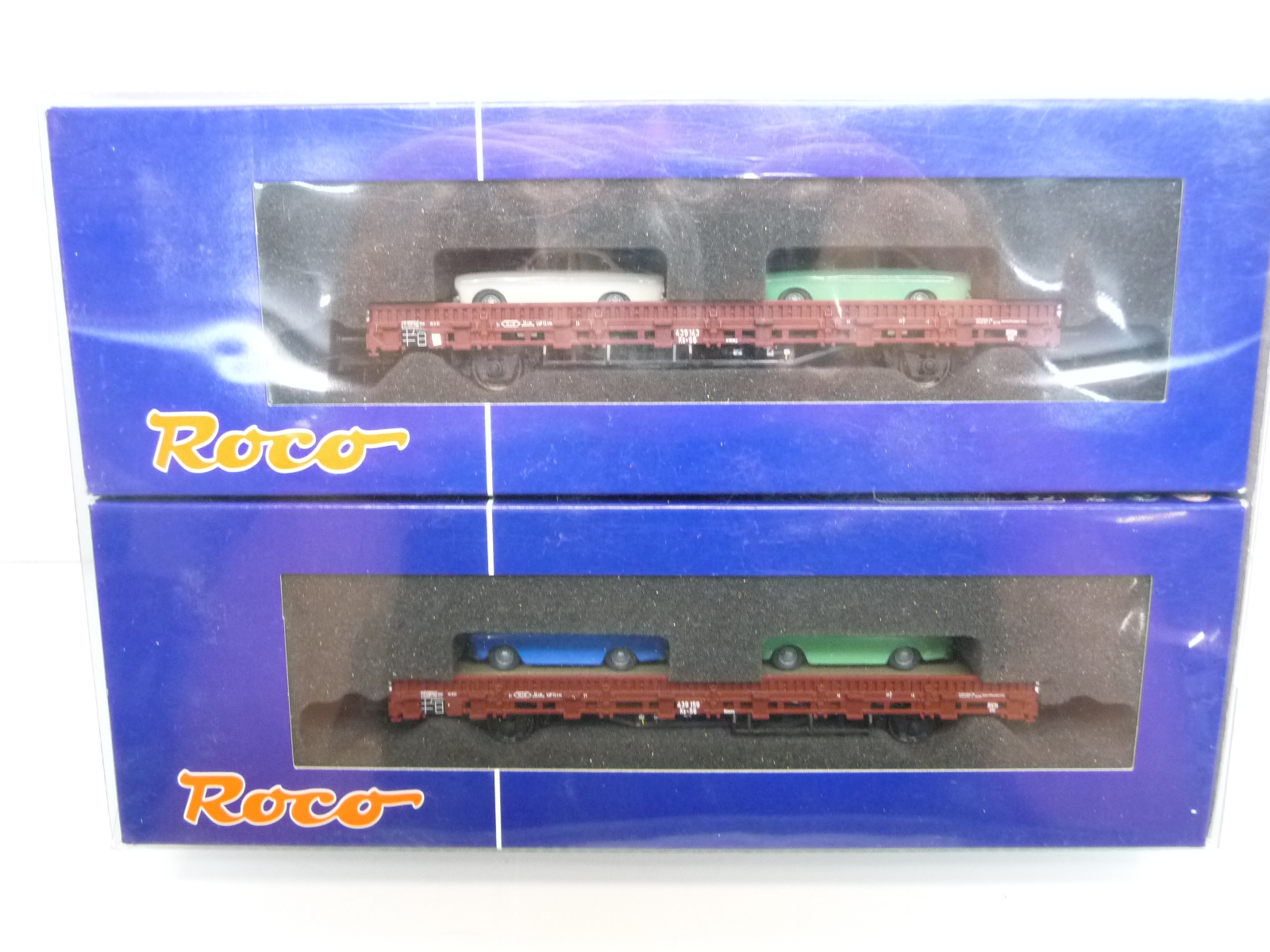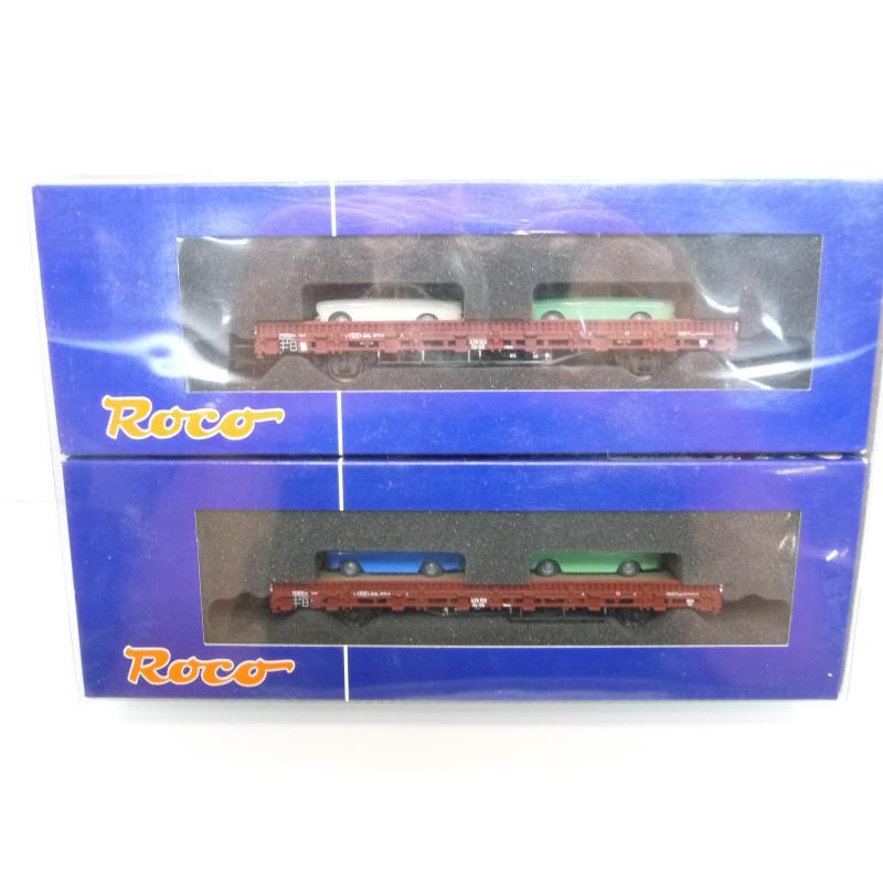 » » » » Roco 66033 H0 Rungenwagen-Set 2-teilig beladen mit 4 VW 1600 wie ladenneu !!