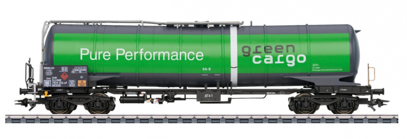 Vorbild: Vierachsiger Kesselwagen Bauart Zacns mit einem Fassungsvermögen von 95 m3. Privatwagen der Ermewa S.A.S., registriert in Schweden. Graphitgraue Grundfarbgebung mit zusätzlicher Green Cargo-Beschriftung. Betriebszustand ab 2013.