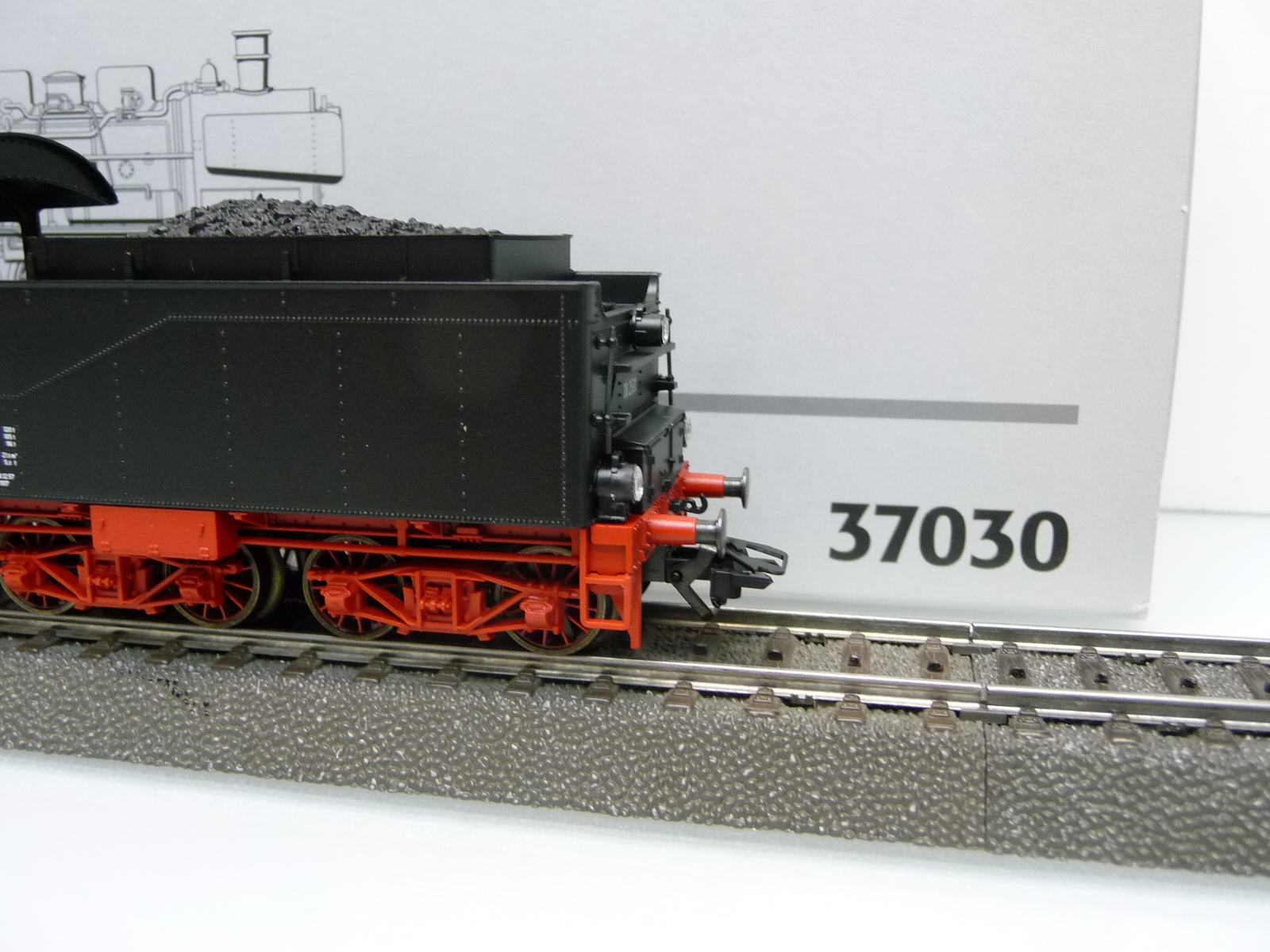 Modell: Mit Digital-Decoder und geregeltem Antrieb. Hochleistungsmotor mit Glockenanker und Schwungmasse im Kessel. 3 Achsen angetrieben. 2 Haftreifen. Spitzensignal konventionell in Betrieb, digital schaltbar. Rauchsatz 72270 nachrüstbar. Rauchsatzkontakt sowie Anfahr- und Bremsverzögerung mit Control Unit 6021 digital schaltbar. Führerstand mit Inneneinrichtung. Feste Kurzkupplung zwischen Lokomotive und Tender. Beiliegend Lokführer-und Heizerfigur. Länge über Puffer 21,8 cm.