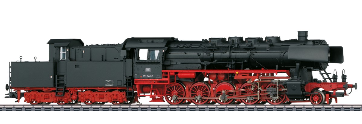 Vorbild: Güterzug-Dampflokomotive Baureihe 051 mit Kabinentender der Deutschen Bundesbahn (DB). Witte-Windleitbleche, 4 Kesselaufbauten, gekürzter Umlauf, DB-Reflexglaslampen und beidseitig Indusi. Betriebsnummer 051 341-6. Betriebszustand Anfang der 1970er Jahre.