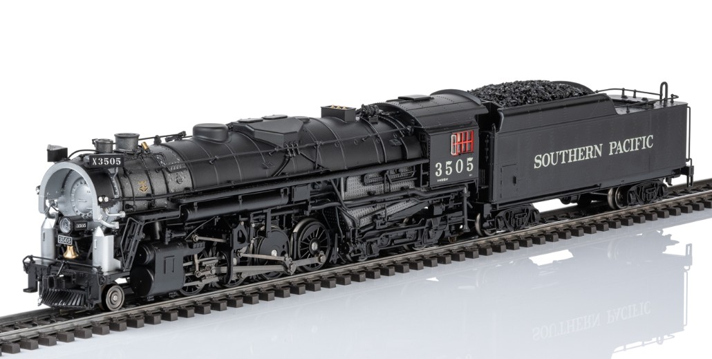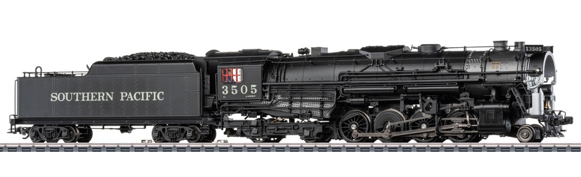 Vorbild: Dampflokomotive mit der Achsfolge 2-8-4 "Berkshire" der Southern Pacific. Tiefschwarze Grundfarbgebung. Betriebsnummer 3505. Betriebszustand zwischen 1945 und 1950. Eine von 25 gebauten Lokomotiven mit dem markanten Coffin-Vorwärmer.