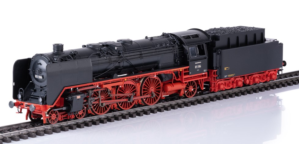 Vorbild: Schnellzug-Dampflokomotive Baureihe 01 der Deutschen Reichsbahn-Gesellschaft (DRG), mit Kohlen-Schlepptender 2´2´T34. Wagner-Windleitbleche und Rauchkammer mit Zentralverschluss. Lok-Betriebsnummer 01 184. Betriebszustand um 1936.