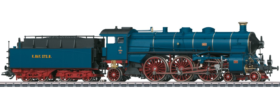 Vorbild: Schnellzug-Dampflok der bayerischen Gattung S 3/6 als Lok der K. Bay. Staatseisenbahnen, Unterbaureihe d, die "Hochhaxige" mit 2.000 mm Treibraddurchmesser. Im fiktiven Zustand mit Betriebsnummer 3622 in grünblauer Grundfarbgebung. Betriebszustand um 1912.