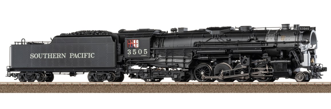 Vorbild: Dampflokomotive mit der Achsfolge 2-8-4 "Berkshire" der Southern Pacific. Tiefschwarze Grundfarbgebung. Betriebsnummer 3505. Betriebszustand zwischen 1945 und 1950. Eine von 25 gebauten Lokomotiven mit dem markanten Coffin-Vorwärmer.