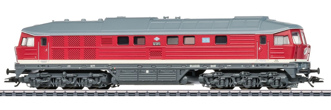 Vorbild: Diesellokomotive BR 132 der Deutschen Reichsbahn (DR/DDR), auch bekannt unter dem Spitznamen „Ludmilla“. Rubinrote Grundfarbgebung. Betriebsnummer 132 457-3. Betriebszustand um 1990.