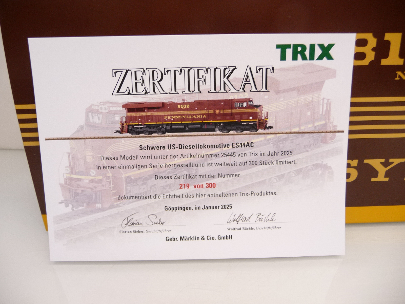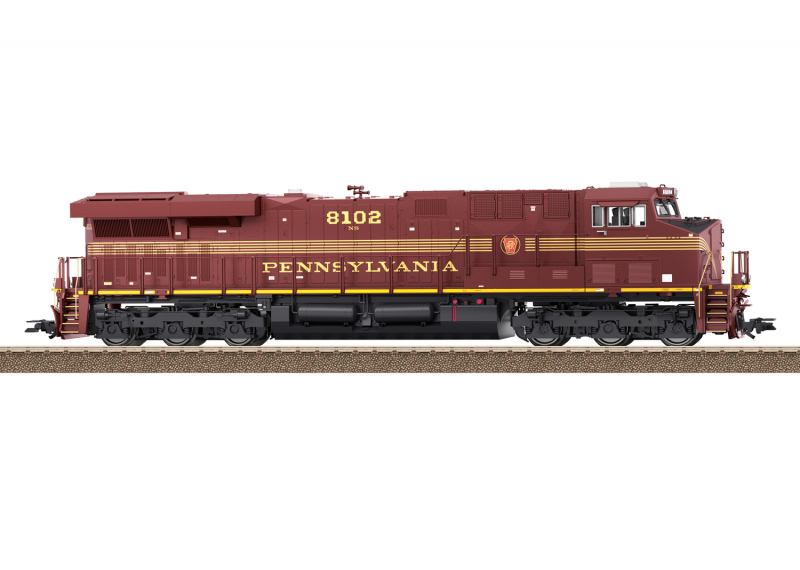 Vorbild: Schwere dieselelektrische Güterzuglokomotive Typ General Electric ES44AC der Norfolk Southern (NS). Grundfarbgebung in Tuscan Red der ehemaligen Pennsylvania RR. Betriebsnummer 8102. Aktueller Betriebszustand als Heritage-Lokomotive.