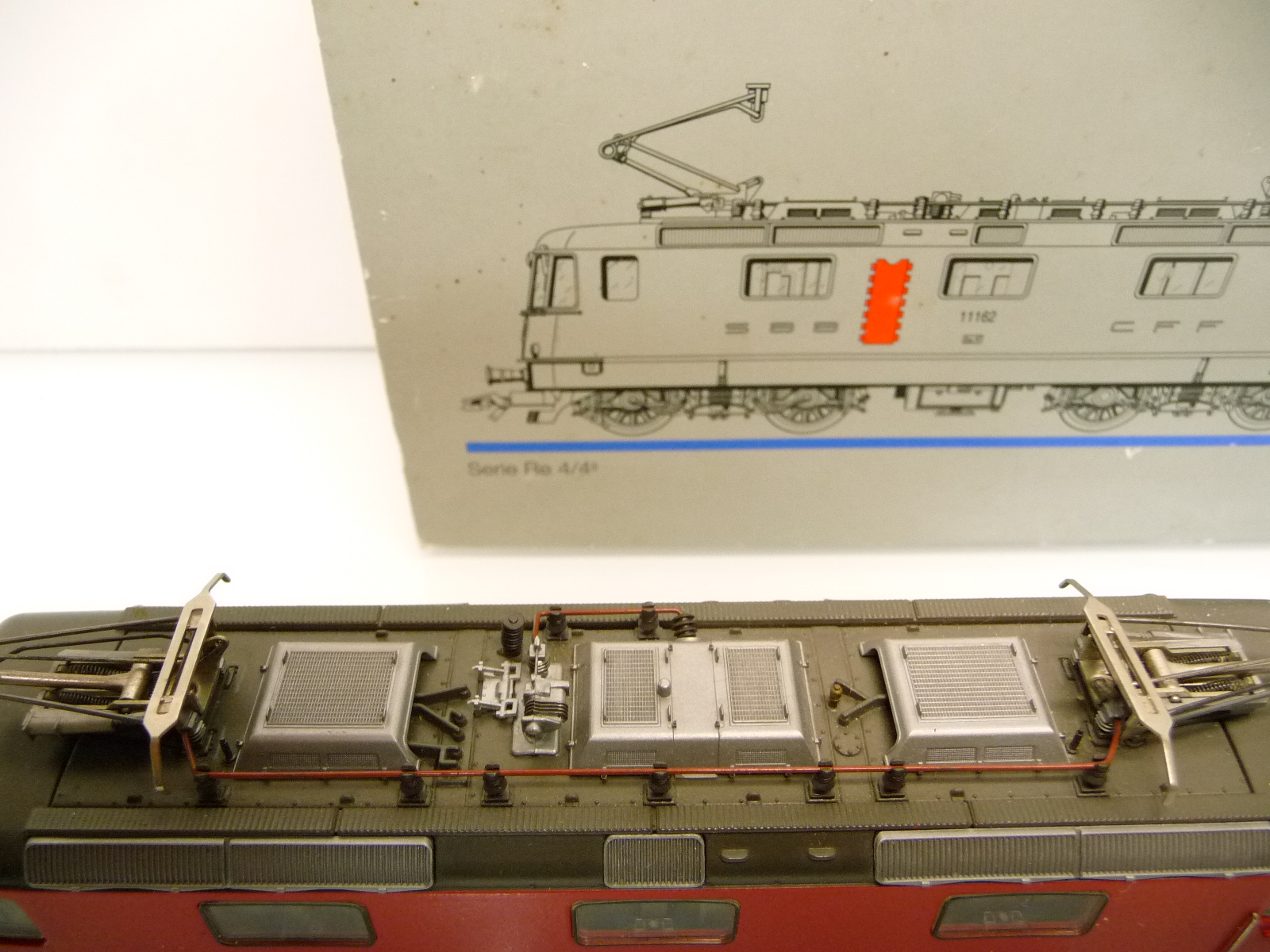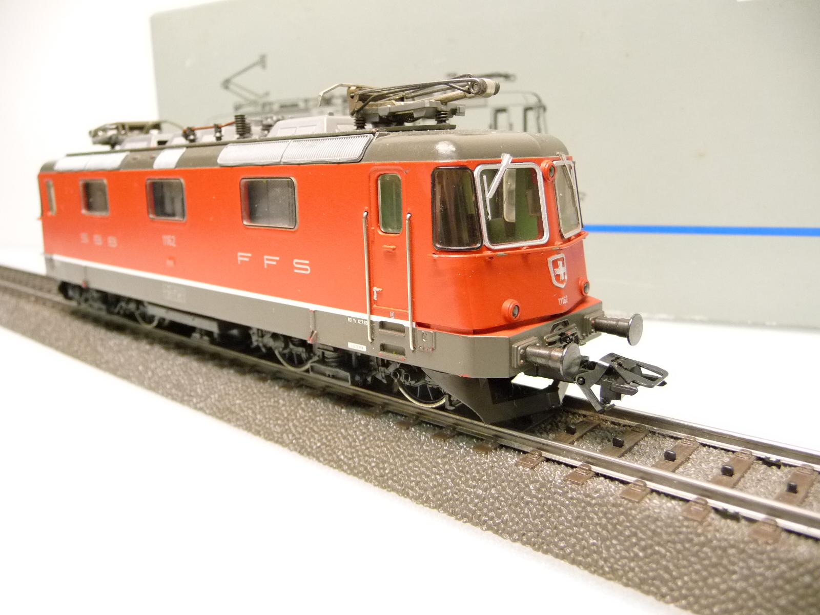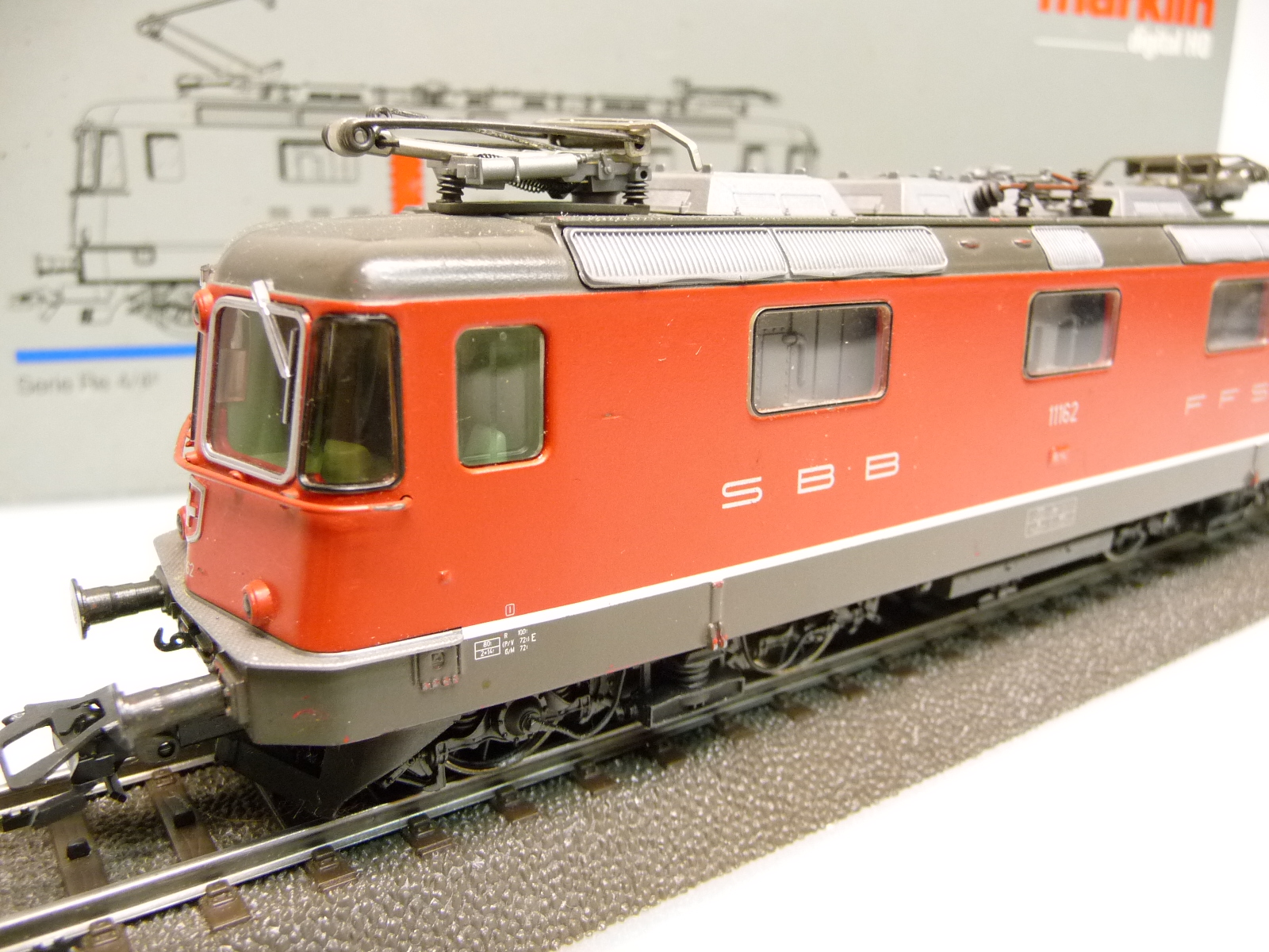 Die Lok hat einige Gebrauchsspuren an den Achsen und am Schleifer - an einer Front fehlt die umlaufende Trittleiste
