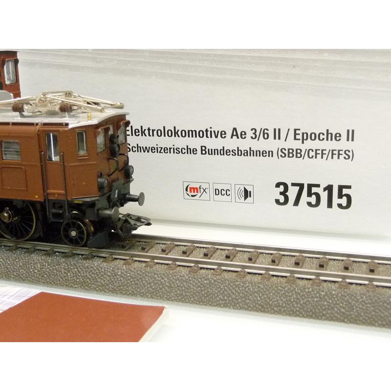 Mit Digital-Decoder mfx+ und umfangreichen Geräuschfunktionen. Geregelter Hochleistungsantrieb. 3 Achsen und 2 Blindwellen angetrieben. Haftreifen. Dreilicht-Spitzensignal und ein weißes Schlusslicht (Schweizer Lichtwechsel) mit der Fahrtrichtung wechselnd konventionell in Betrieb, digital schaltbar. Umschaltung auf ein rotes Schlusslicht möglich. Beleuchtung mit wartungsfreien warmweißen und roten Leuchtdioden. Eingesetzte Griffstangen. Ein Booklet informiert über die Geschichte der Lokomotive. Länge über Puffer 16 cm.
