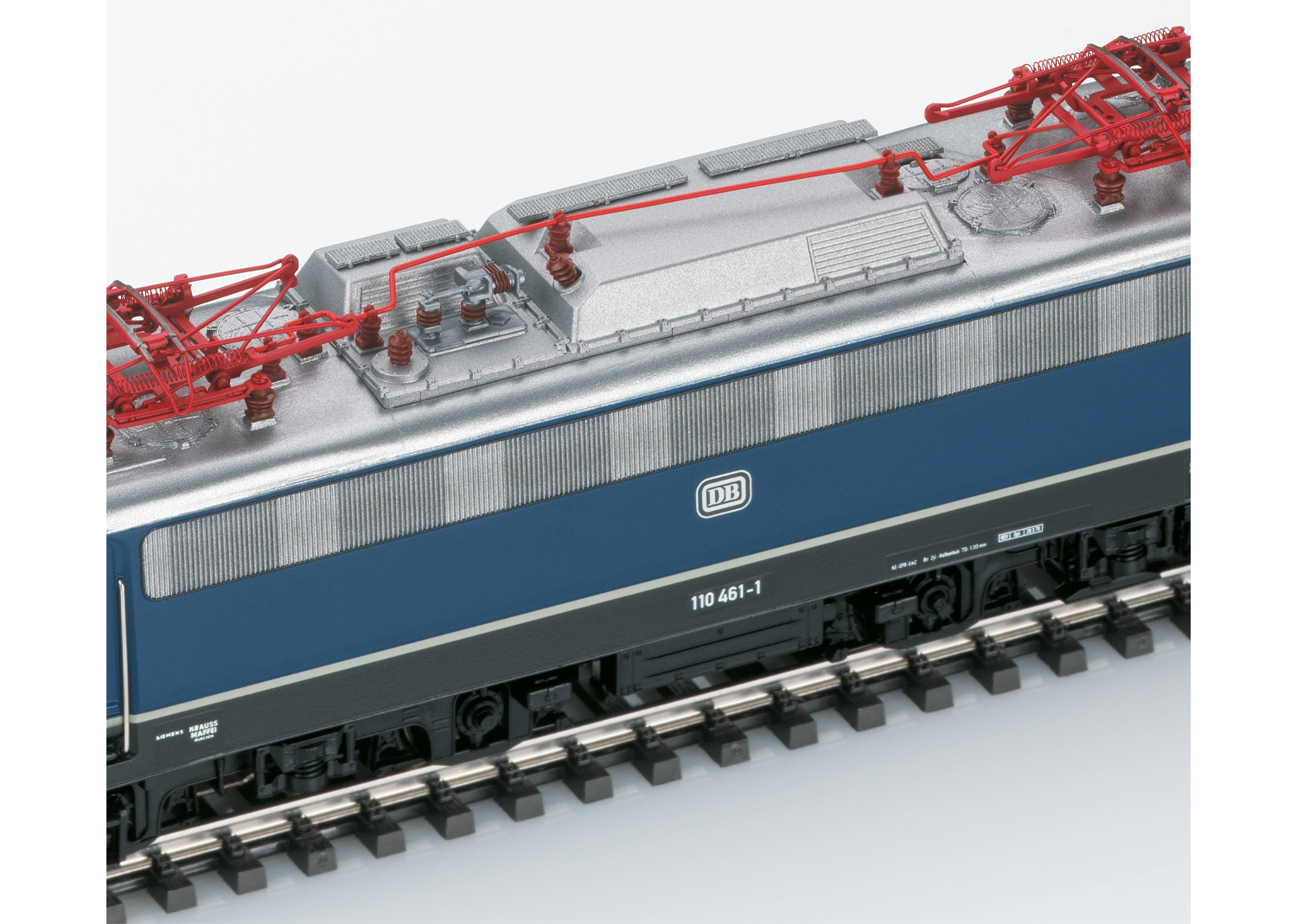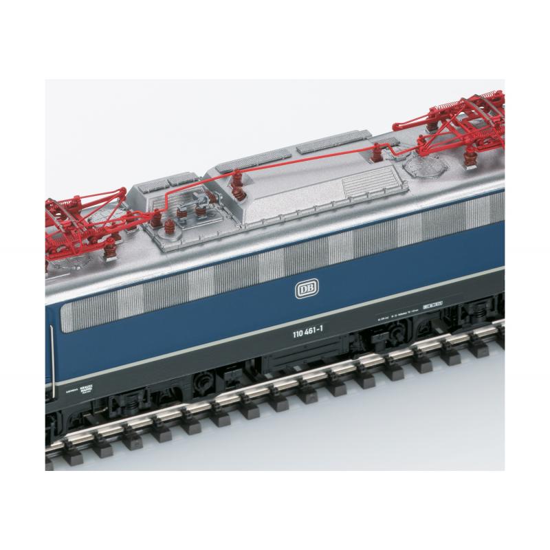 Mit Digital-Decoder mfx+ und umfangreichen Geräuschfunktionen. Geregelter Hochleistungsantrieb mit Schwungmasse, zentral eingebaut. Alle vier Achsen über Kardan angetrieben. Haftreifen. Fahrtrichtungsabhängig wechselndes Dreilicht-Spitzensignal und zwei rote Schlusslichter konventionell in Betrieb, digital schaltbar. Spitzensignal an Lokseite 2 und 1 jeweils separat digital abschaltbar. Doppel-A-Licht-Funktion. Führerstandsbeleuchtung digital schaltbar. Beleuchtung mit wartungsfreien warmweißen und roten Leuchtdioden (LED). Detailliert ausgeführte Dachaufbauten mit neu konstruierten Stromabnehmern der Bauart DBS 54. Stromabnehmer digital heb- und senkbar. Viele separat angesetzte Teile wie Griffstangen, Tritte und UIC-Steckdosen. Pufferhöhe nach NEM. Kinematikgeführte Kurzkupplungen. Bremsleitungen und Schraubenkupplungen liegen als separat ansteckbare Teile bei. Länge über Puffer 18,9 cm.