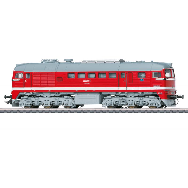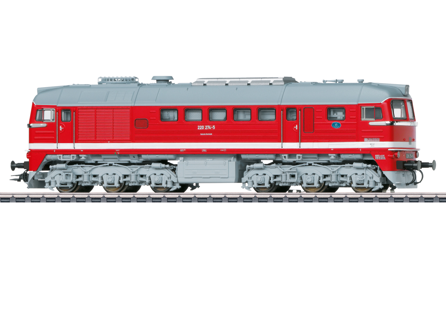 Vorbild: Diesellokomotive BR 220 der Deutschen Bahn AG (DB AG), auch bekannt unter dem Spitznamen „Taigatrommel“. Mit Schalldämpfer sowjetischer Bauart, Ansauggitter mit senkrechten Lamellen und Kühlerlüfter mit Flatterlamellen. Betriebszustand 1994. Betriebsnummer 220 274.