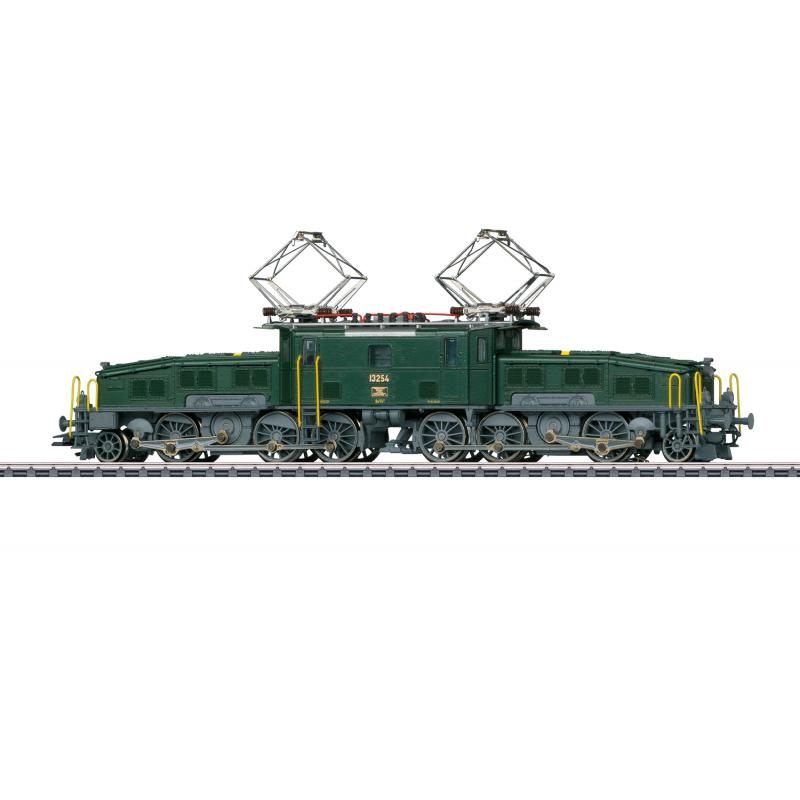 Vorbild: Elektrolokomotive Serie Be 6/8 II „Krokodil“ der Schweizerischen Bundesbahnen (SBB). Bauart aus der ersten Bauserie. Tannengrüne Grundfarbgebung. Mit 2 Führerstandstüren, breiten Rangierertreppen an den Vorbauten und bügelförmigen Haltegriffstangen, Hülsenpuffer, ohne Übergangsbleche, mit Falschfahrsignal und Signum-Integra-Magneten. Lok-Betriebsnummer 13254. Betriebszustand zwischen 1960 und 1965.