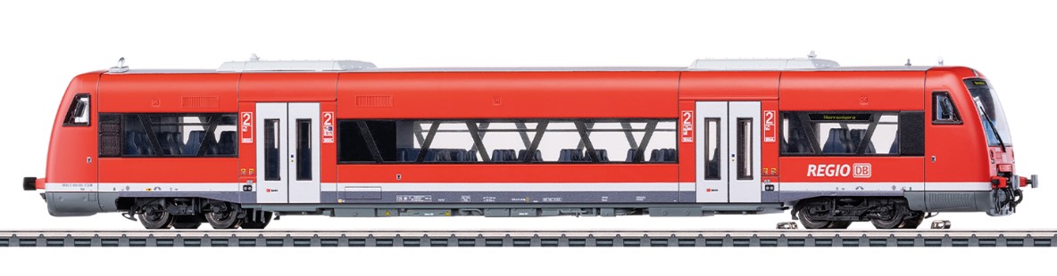 Vorbild: Dieseltriebwagen vom Typ Regio Shuttle RS1 als Baureihe 650 der Deutschen Bahn AG (DB AG). Ausführung mit Schraubenkupplung, Puffern und obenliegender Zugzielanzeige. Verkehrsrote Grundfarbgebung. Betriebsnummer 650 020-0. Betriebszustand ab 2015.