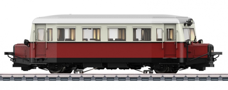 Vorbild: Dieseltriebwagen Cvt-34 „Wismarer Schienenbus“ (Typ "Hannover A"), der Chemin de Fer à Vapeur des Trois Vallées (CFV3V), Mariembourg, Belgien. Farbe Purpurrot/Reinweiß, Epoche V/VI (Zustand von 1978 bis 2014).