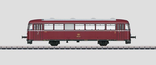 Vorbild: BR 798 + 998 (Motorwagen und Steuerwagen) der Deutschen Bundesbahn (DB). In ursprungsfarbener Epoche-IV-Ausführung zu Beginn der 1970er-Jahre.
