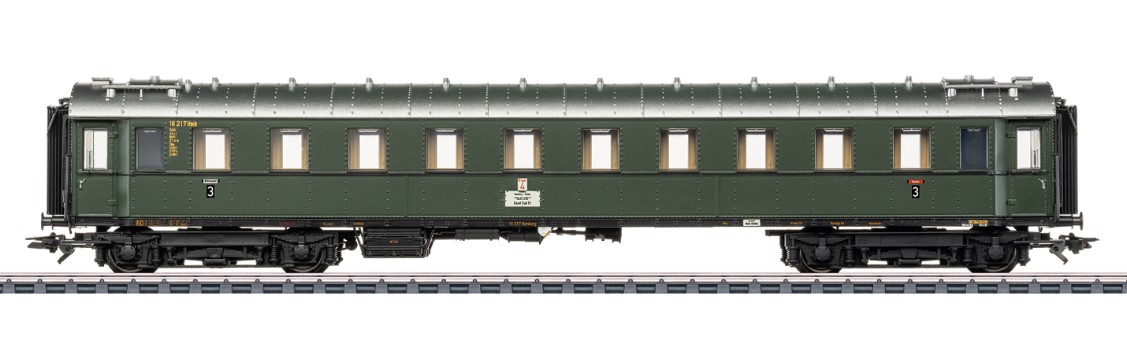Der Schnellzugwagen ist passend zur Neukonstruktion der Schnellzug-Dampflokomotive BR 01.10 mit Neubau-Kessel, mit der Artikelnummer 39105 und kann mit den Schnellzugwagen aus 42533 und 42491 zum vorbildgerechten D 74 ergänzt werden.