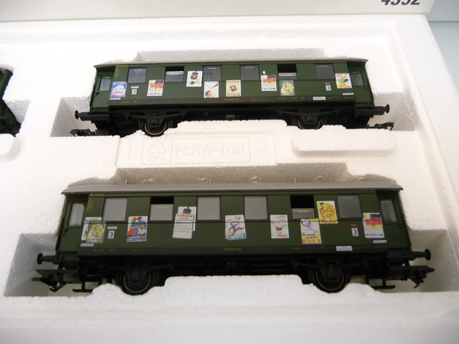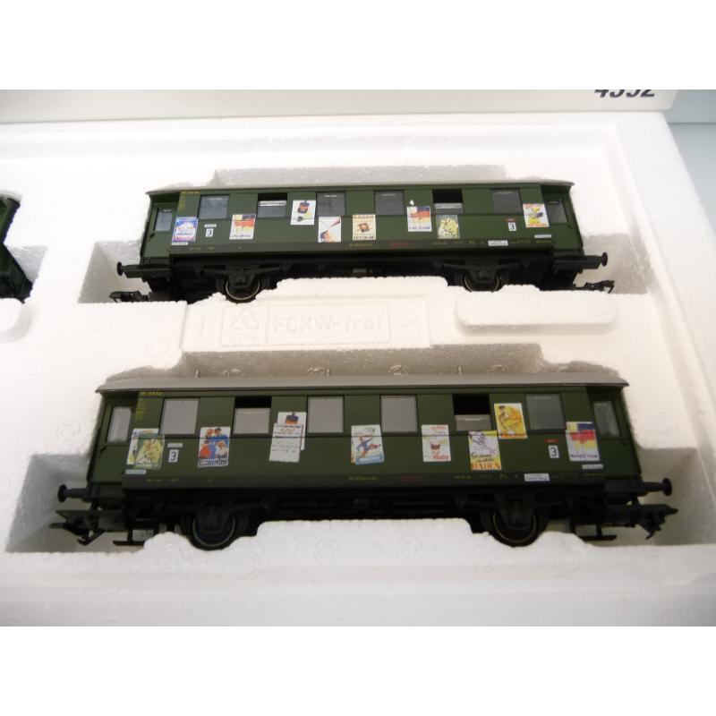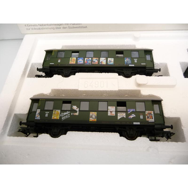 - 4 Nebenbahnwagen der 3.Klasse mit farbigen Plakaten zur Volksabstimmung