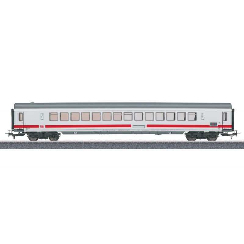 InterCity Großraumwagen im weiß-roten Farbdesign der 1. Klasse. Vorbereitet zur stromführenden Wagenverbindung wahlweise mit steckbaren Kurzkupplungsdeichseln 7319 oder trennbaren Kurzkupplungen 72020/72021.